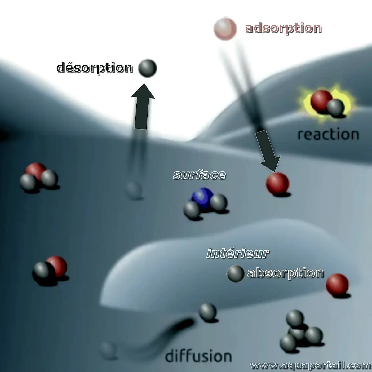 La sorption désigne la fixation physique de molécules à des particules. La force de la liaison est influencée par les propriétés chimiques du composé, sa concentration et la composition du matériau.