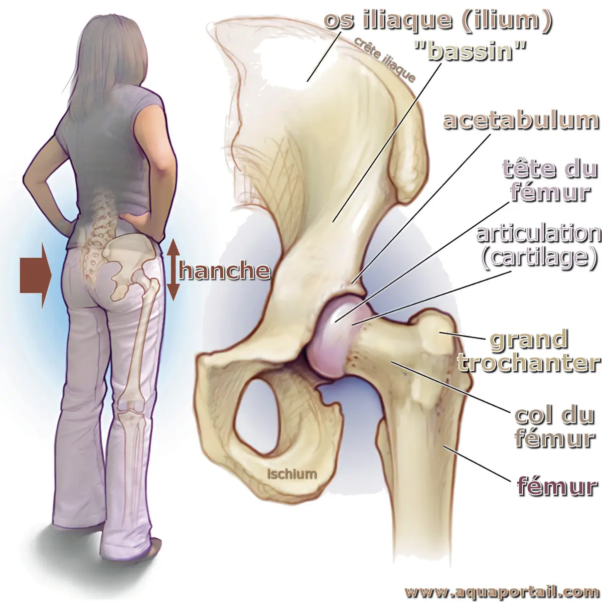 L'articulation de la hanche est la plus grande articulation supportant le poids du corps humain. De type sphéroïde, elle est entourée d'un réseau de muscles, de ligaments et de tendons. Elle est formée par la jonction du fémur (os de la cuisse) avec le bassin.