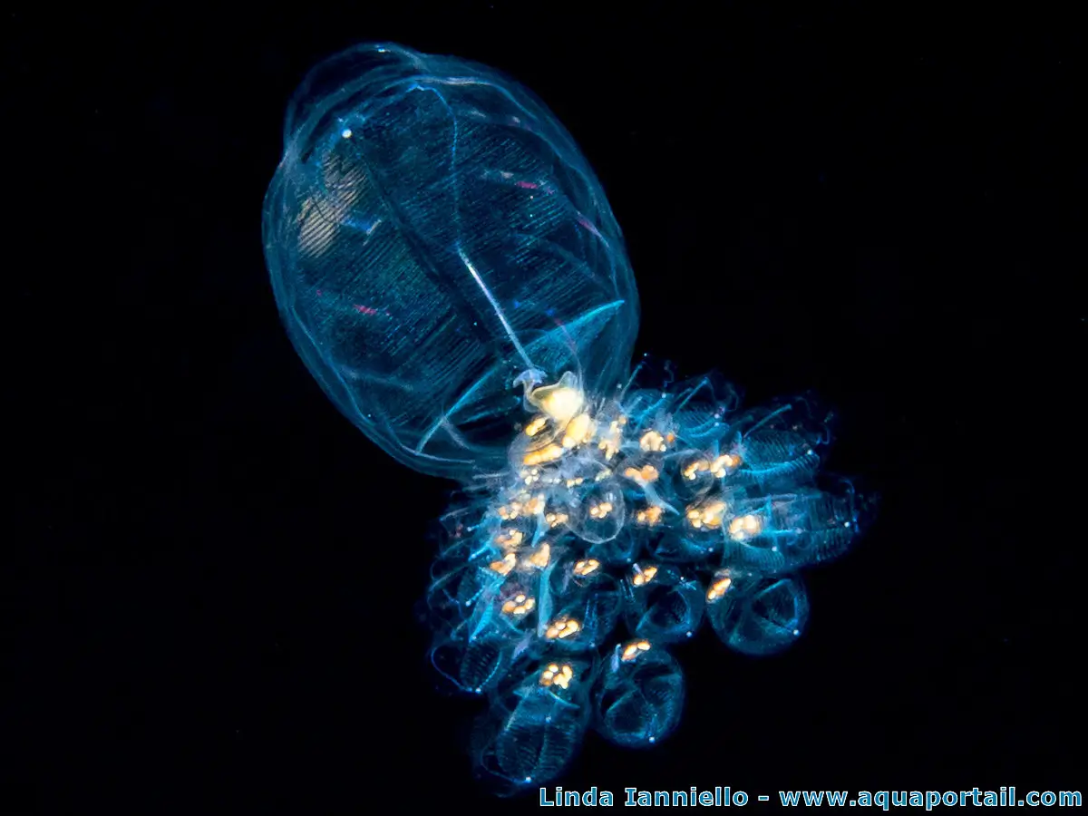 Dolioletta gegenbauri est une doliole assez commune dans la famille Doliolidae. Les dolioles sont parfois qualifiées de "zooplancton gélatineux" en raison de leur tunique faite de tunicine. Illustration du terme doliole et ses synonymes en image.