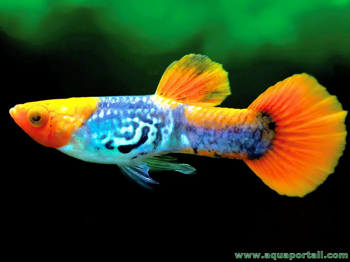 Les poissons d'ornement sont le plus souvent assimilés aux poissons exotiques issu d'un climat tropical à subtropical, comme ce spécimen mâle de guppy Poecilia reticulata, mais certains poissons d'eau tempérée et même quelques espèces de poissons d'eau froide sont considérés comme des poissons ornementaux. Illustration du terme poisson d'ornement et ses synonymes en image.