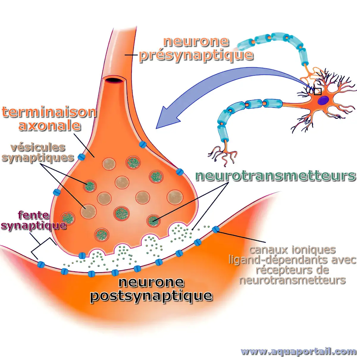 Le potentiel postsynaptique excitateur augmente la probabilité qu'un neurone postsynaptique déclenche un potentiel d'action. Un potentiel postsynaptique inhibiteur peut exister au niveau de toute synapse chimique communiquant par libération de neurotransmetteurs. Illustration du terme potentiel postsynaptique et ses synonymes en image.
