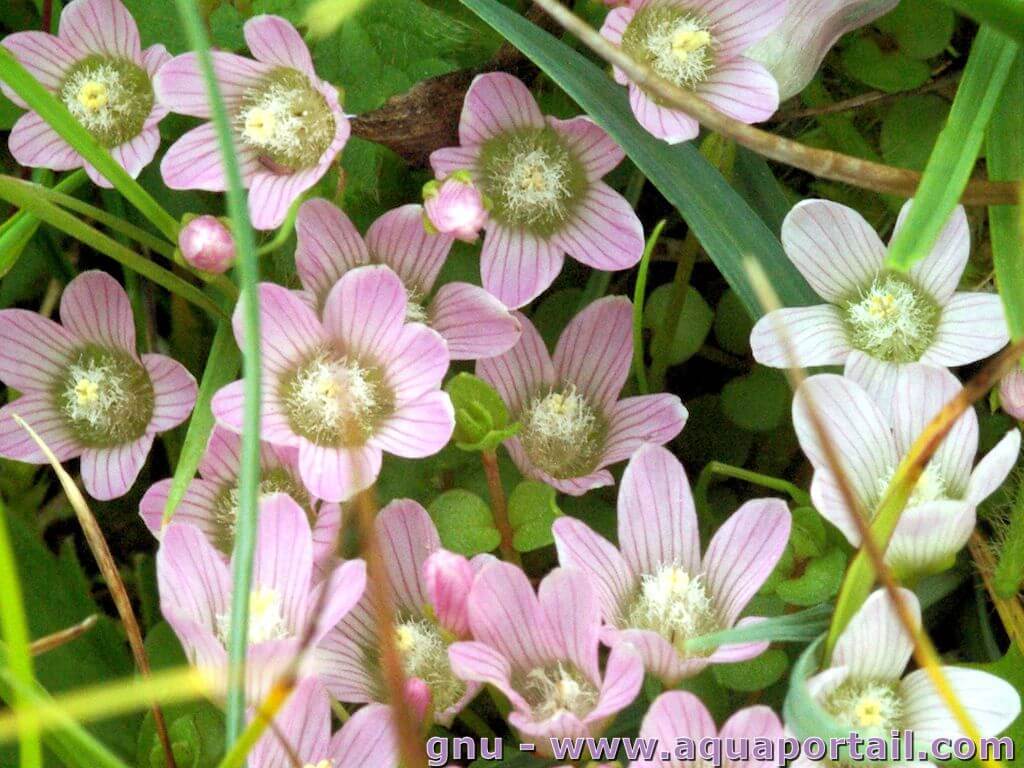 Des fleurs rose du mouron délicat des marais Anagallis tenella :