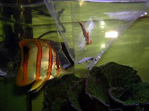 Pour la cohabitation entre plusieurs chelmon, pour moi il n'y a pas de pb à condition comme tjs de choisir des specimens de petite taille et de les integrer en même temps dans le bac.
