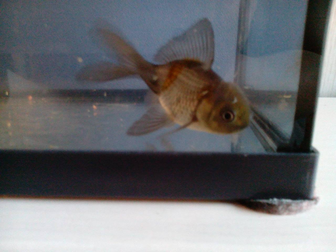 Apparemment tu as 1 voile de chine,c'est un poisson rouge qui ne peut pas aller en bassin, entre autre car il ne supporte pas des températures en dessous de 10 °,je te parle de ça car petit poisson deviendra grand, j'en ai (plus qu'1)qui fait au moins 15 cms...