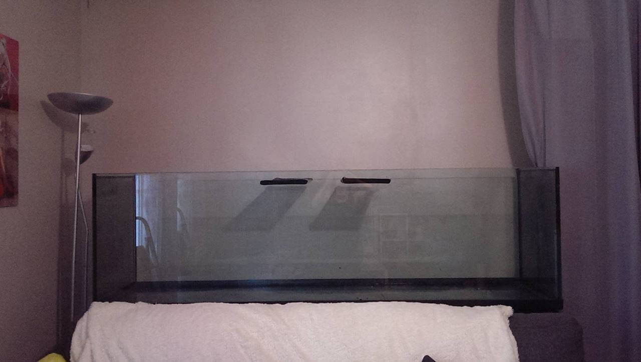 Pour le meuble, il n'y en a pas avec, donc je vais en créer un, en béton habillé en bois, sur que ca tienne comme ça, avec de quoi mettre les pompes etc... Avec pour l'assise de l'aquarium un plan de travail de cuisine + de la mousse par dessus.