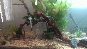 on attend que ça pousse bien, on voulait mettre de la plante gazonnante sur le tout devant et que ça pousse sur la grande branche avec les anubias, à voir comment on évolue ça