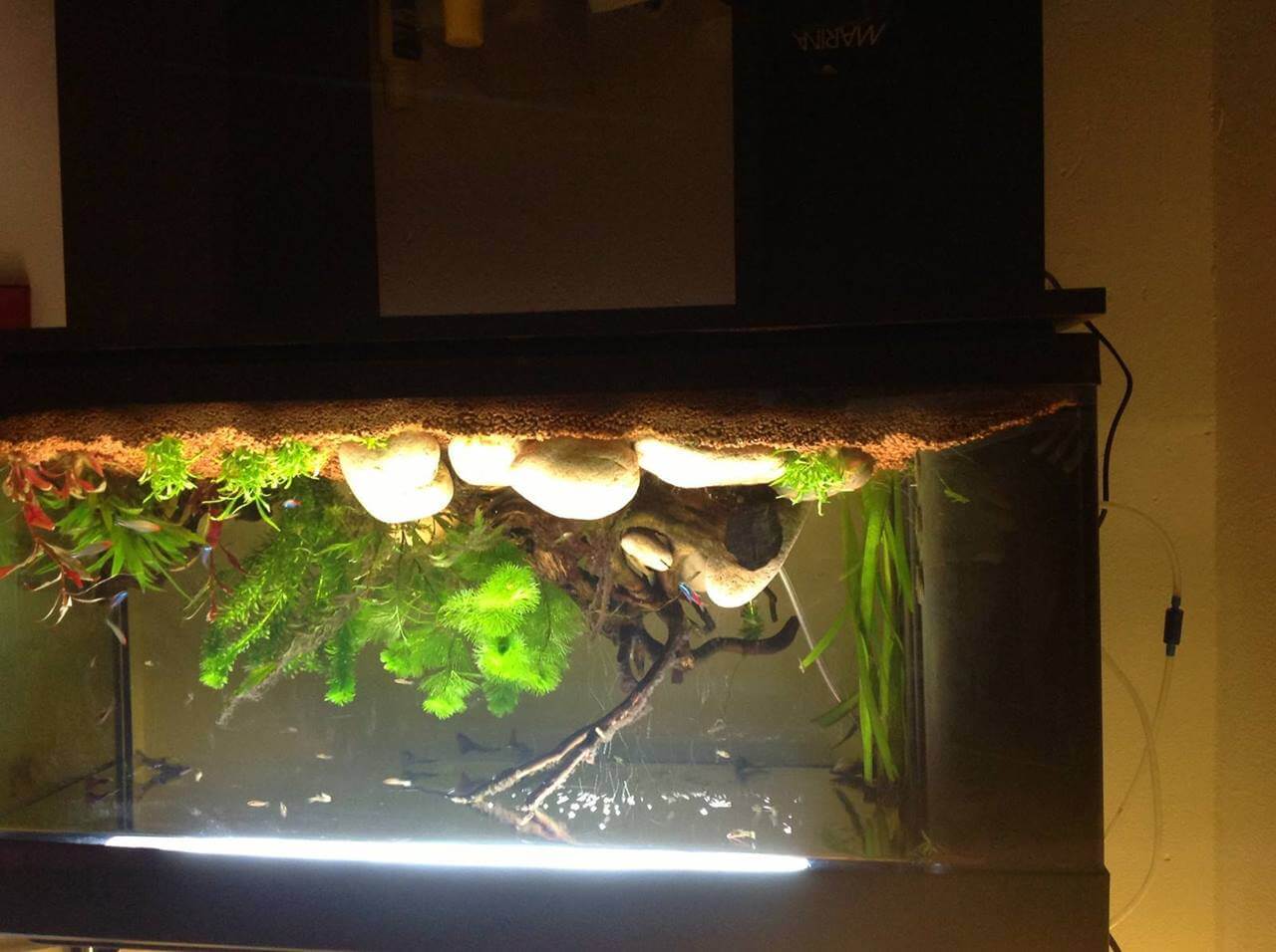 Tes guppy seront bien dans le 50l avec quelque plante et racine