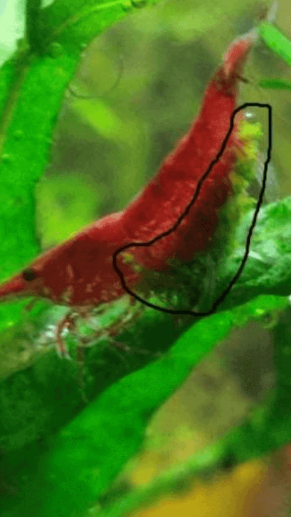 Merci pour votre lien. Mais ce qui est étrange c'est que j'ai plusieurs crevettes qui sont grainées, elles ont toutes des oeufs bien ronds, sur tout le dessous de la queue, et oranges. Celle ci on dirait que ce ne sont pas des oeufs, c'est totalement différent, c'est beaucoup plus fin et disparate... et vert en plus...