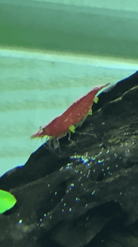 Je viens de sortir la crevette de mon bac. Elle était dans un 180L communautaire avec 22 microrasboras galaxy et 27 autres red cherry (que j'ai pu compter...)