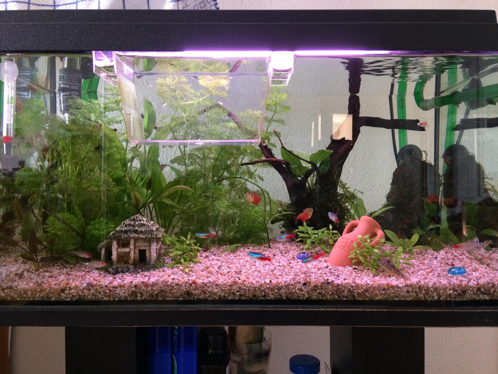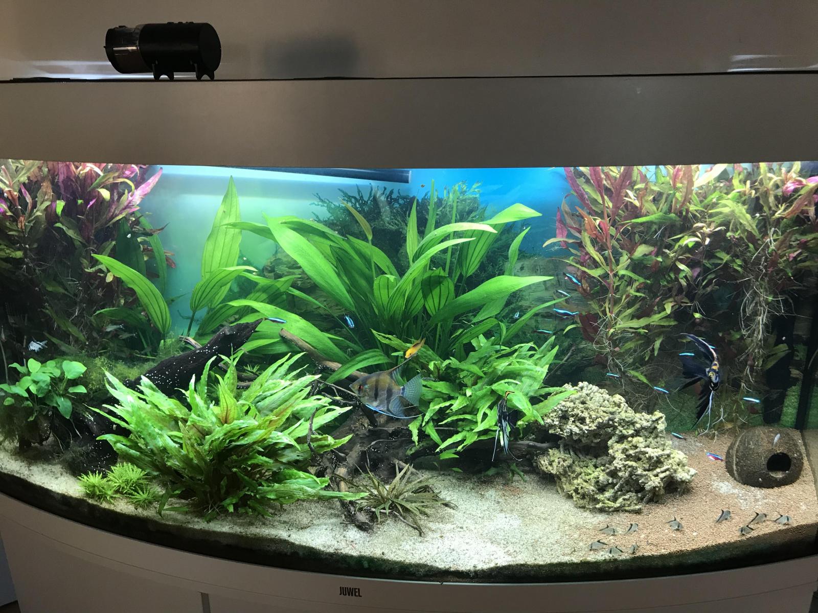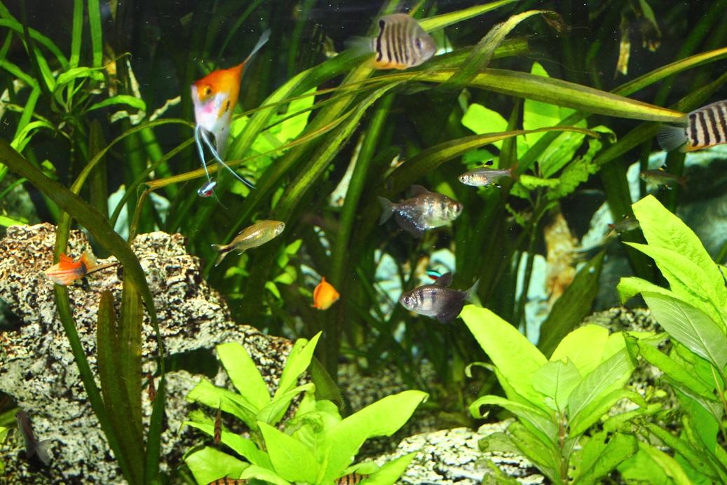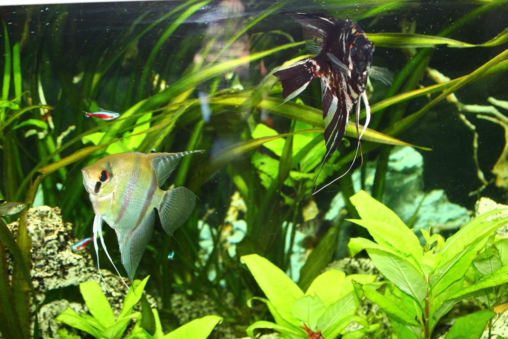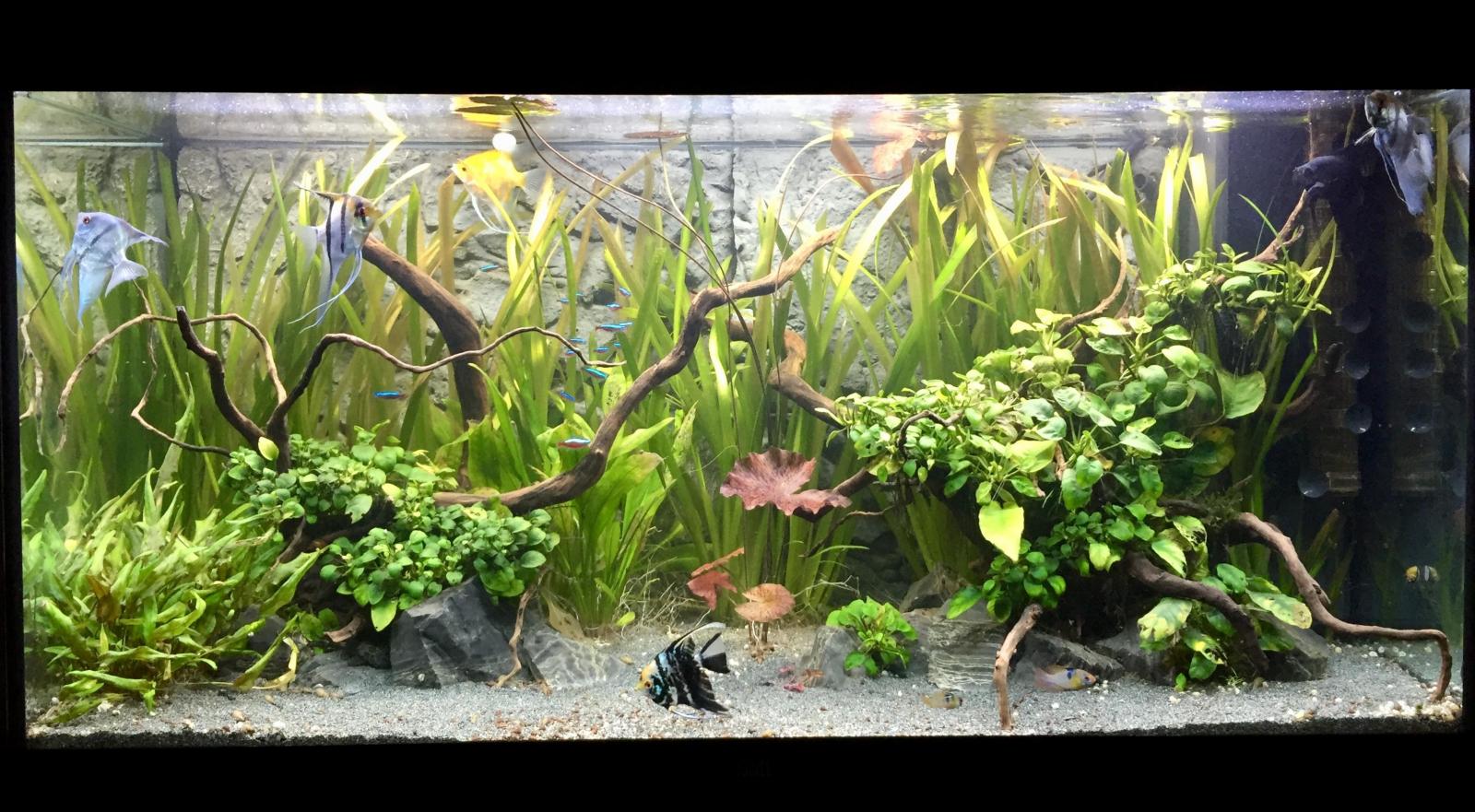 Niveau population dedans il y a 6 scalaires, 12 corydoras, 15 cardinalis, 2 ramirezi (couple) et 4 ancistrus.