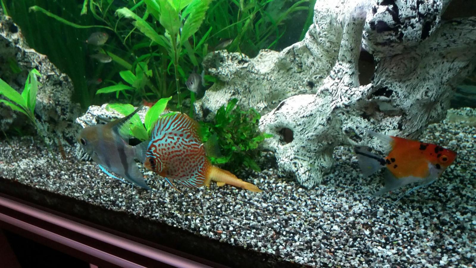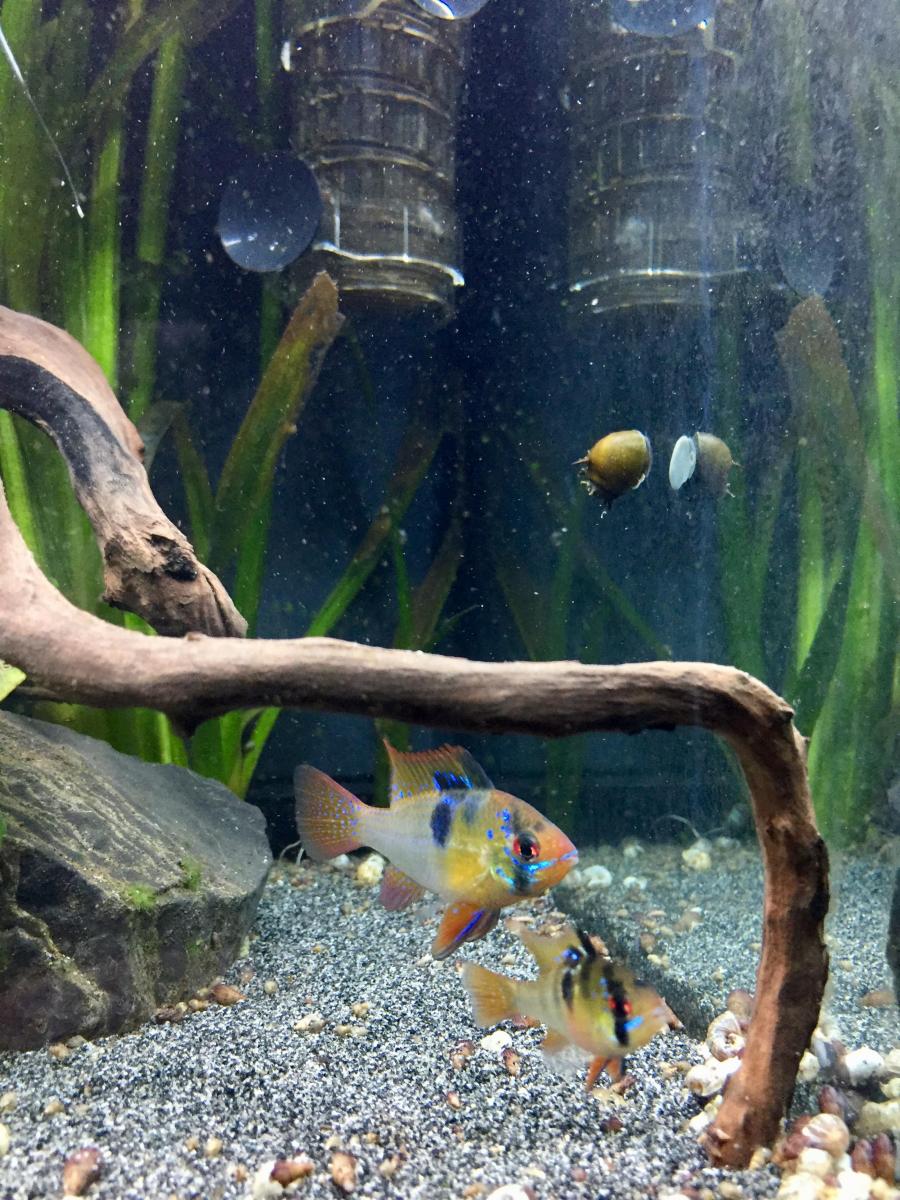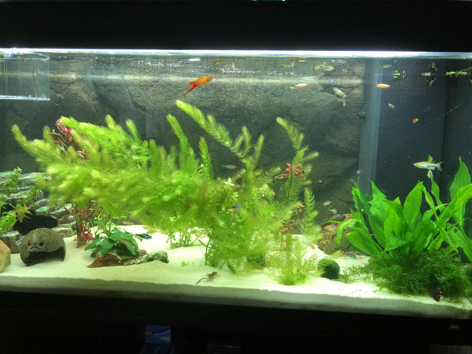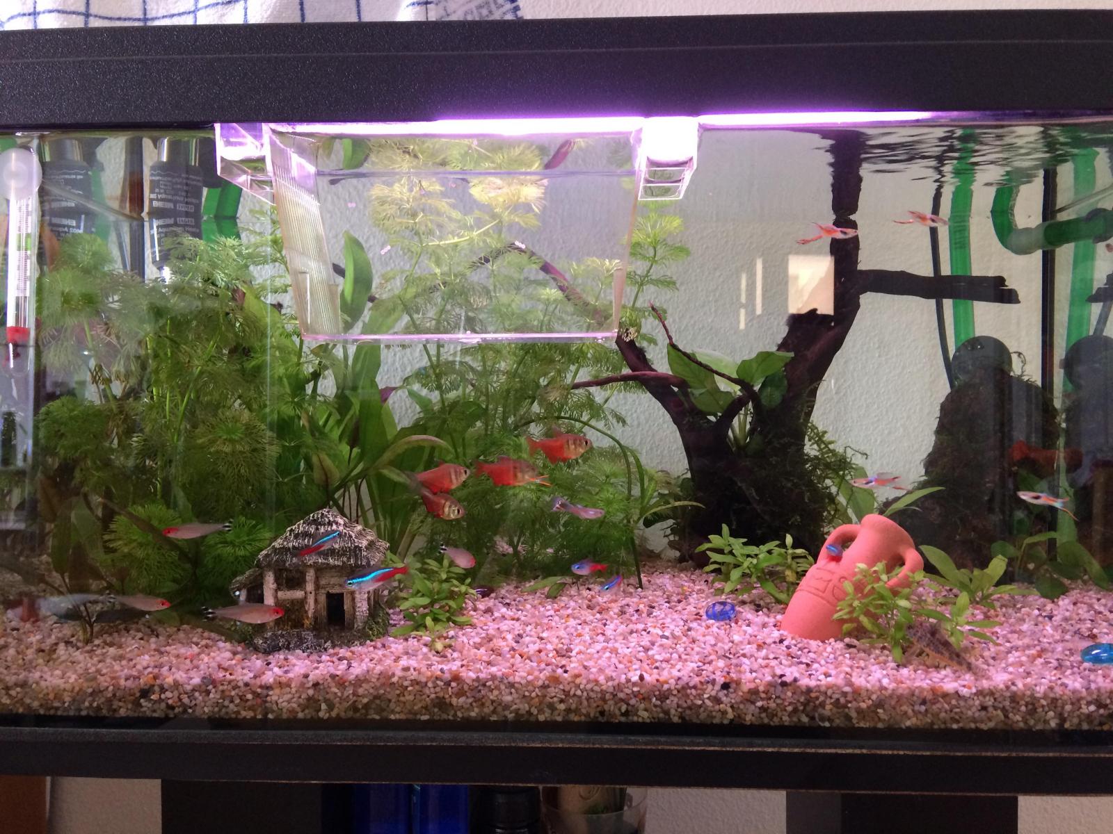 Niveau population dedans il y a 6 scalaires, 12 corydoras, 15 cardinalis, 2 ramirezi (couple) et 4 ancistrus.