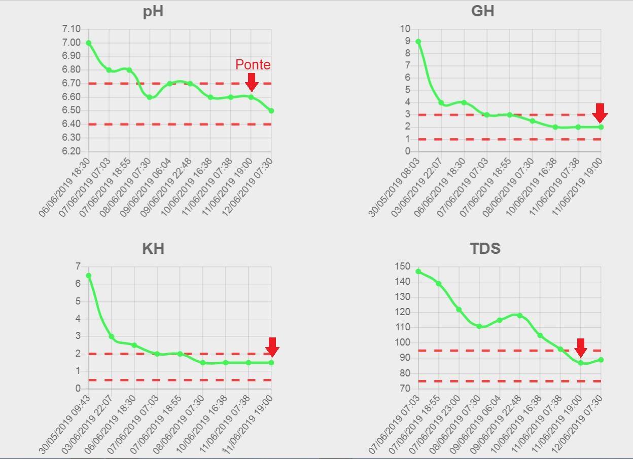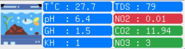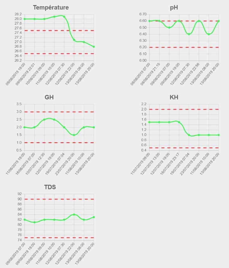 L'eau de remplacement est un mélange d'eau du robinet et d'eau osmosée ayant un TDS proche de l'eau du bac (80 µS/cm).