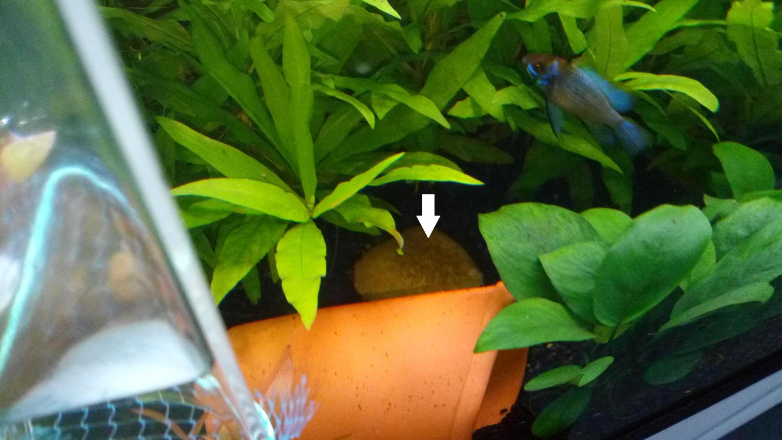Ce matin, en recherchant les parents dans le bac, j'ai finalement constaté que papa Rami était planqué tout au dessus du filtre intérieur.