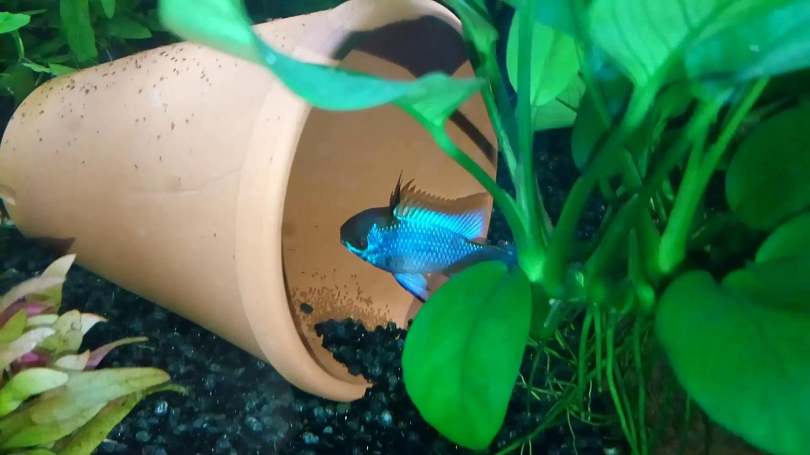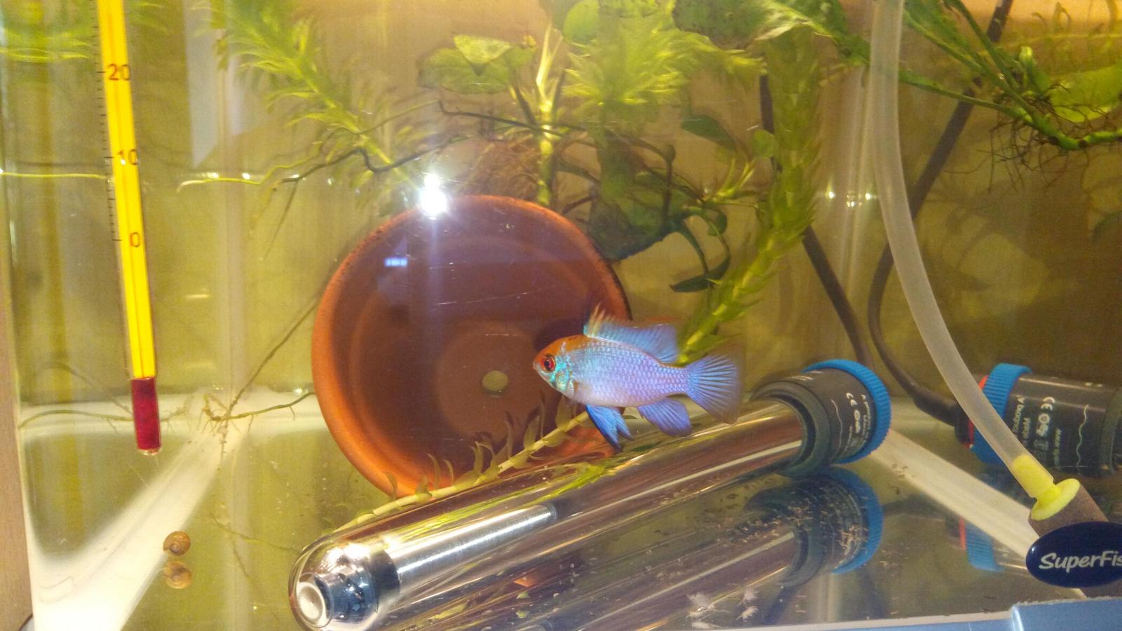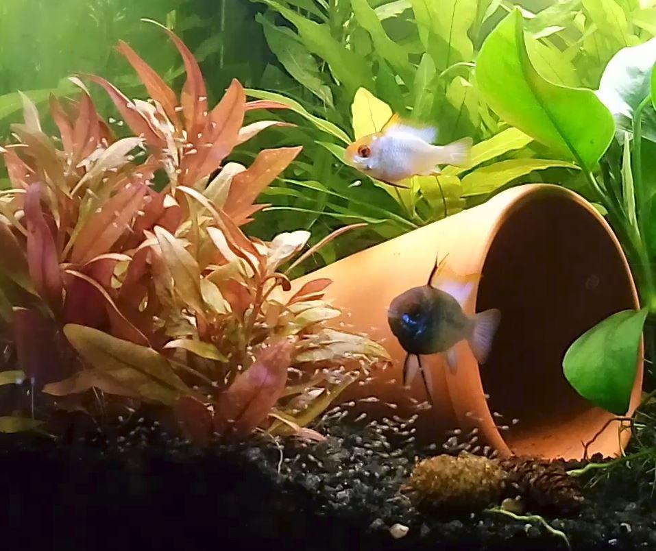 J'ai été confronté à cela après la première ponte de mes Ramis bleus, après que j'ai eu à prélever les majorité des alevins et après que les quelques alevins laissés avec les parents aient disparus.