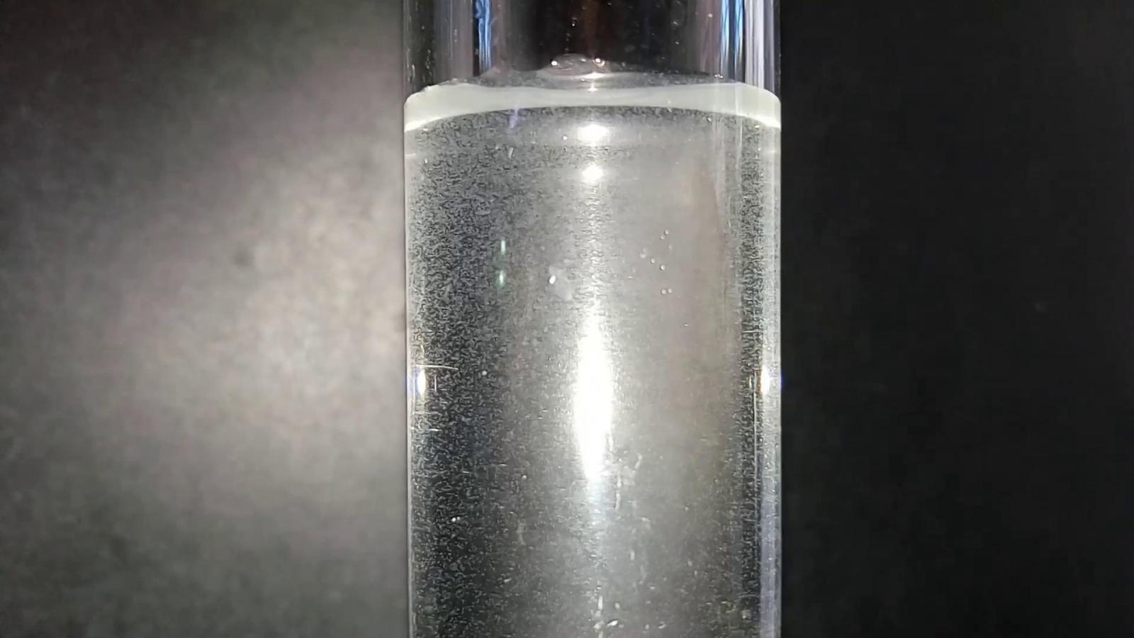 Elle arrive par gravité et au goutte à goutte lent au dessus du bulleur.