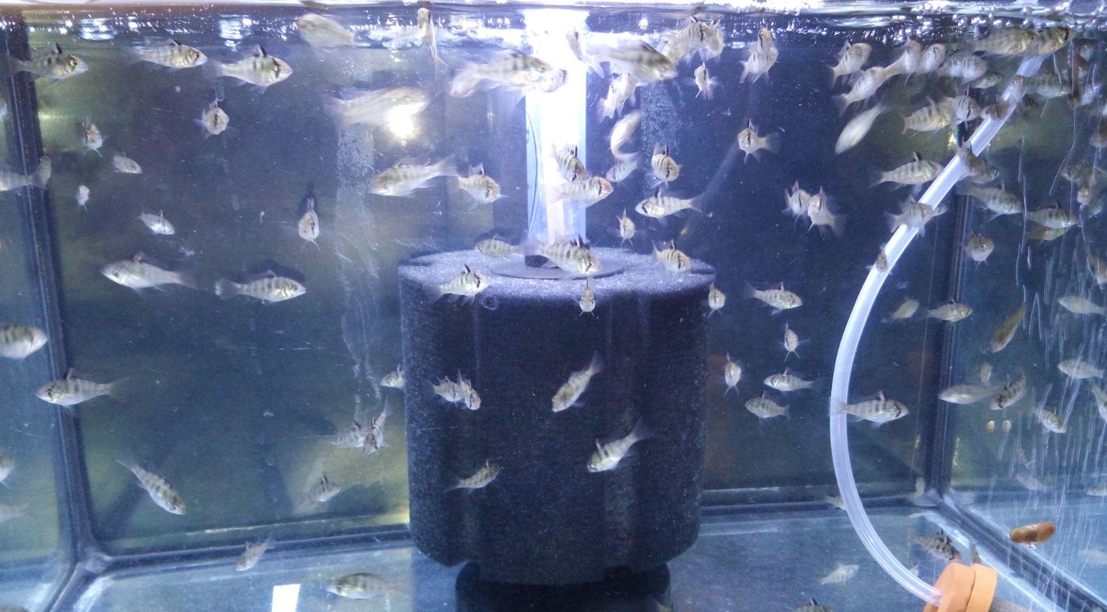 Ci-après une photo des alevins à J34 de NL dans leur bac de grossissement.