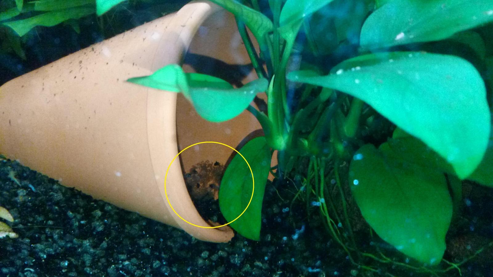 Petite frayeur hier soir en constatant que mes nouveaux-nés Rami bleus (stade larvaire) avaient disparu du pot en terre cuite où ils avaient été placés par leurs parents juste après leur naissance.