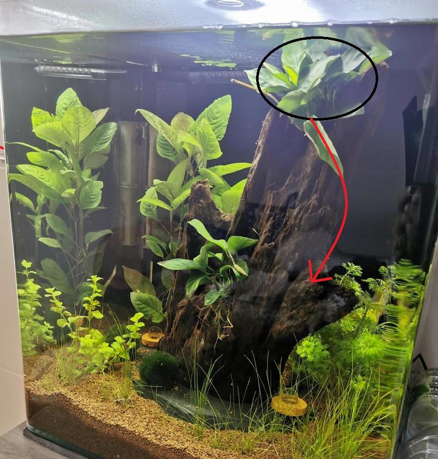Essaye de l'échanger soit contre des plantes flottantes qui se reproduise vite et qui sont facile à trouver, ou de la mousse de java que tu pourrais mettre tout en haut de ta branche, à la place de l'anubia.