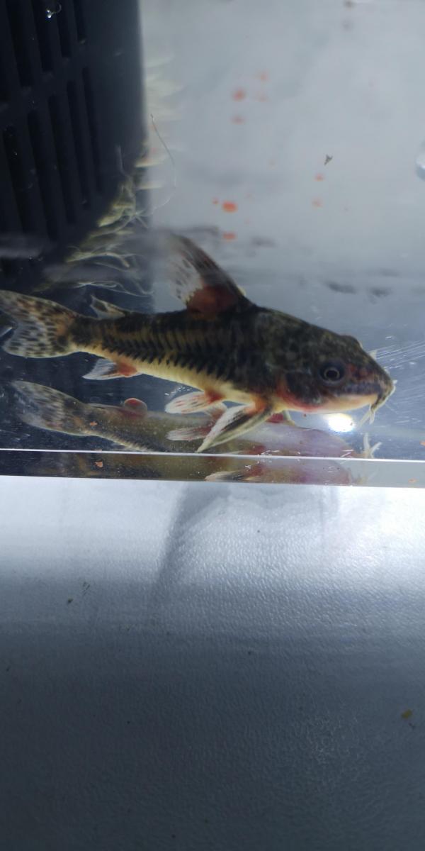 Bonjour des taches rouges sont apparues sur mon corydoras poivré après introduction de guppys de néons bleus d'un macrotocinclus et d'un escargot. Je l'ai isolé.