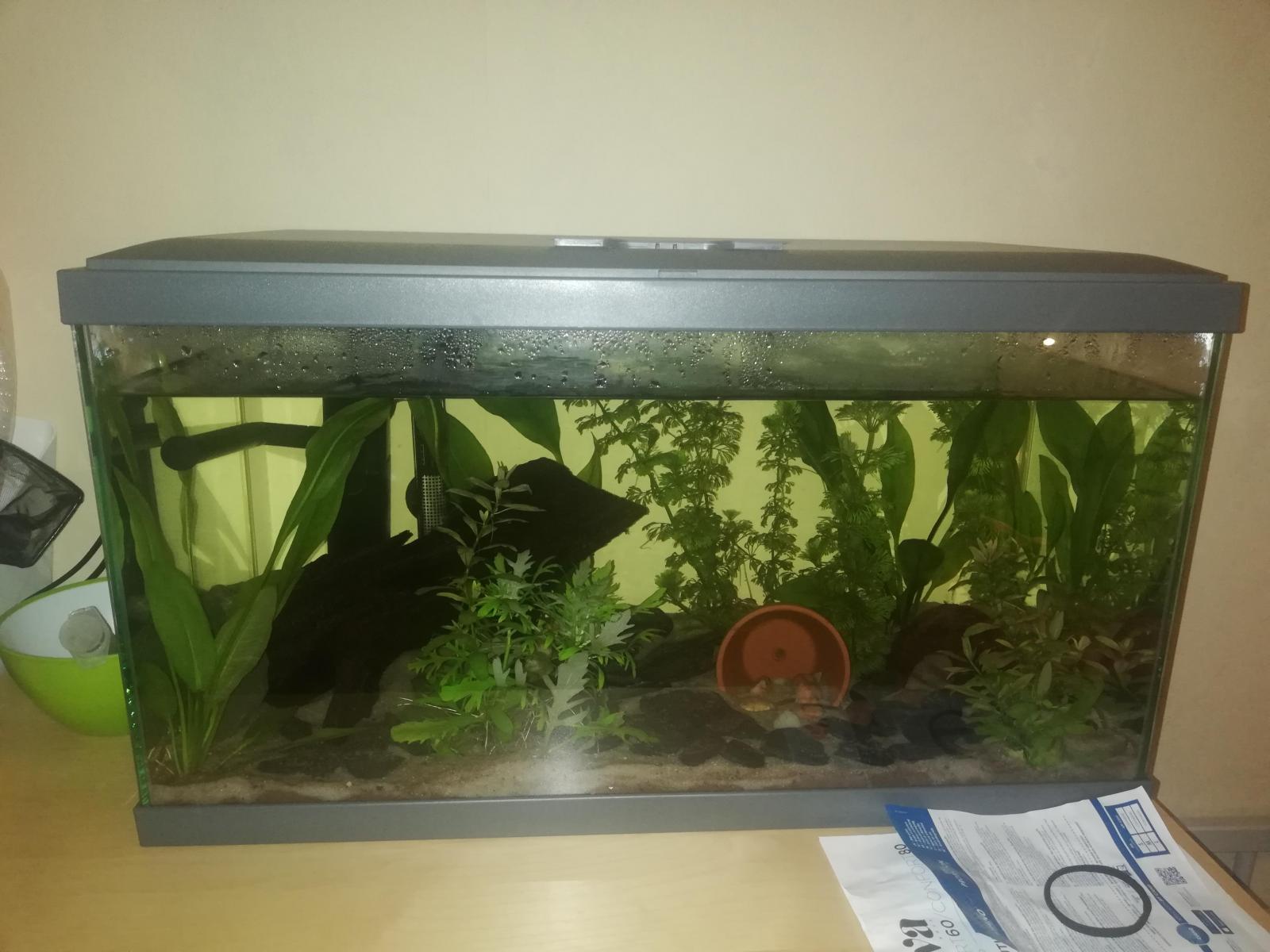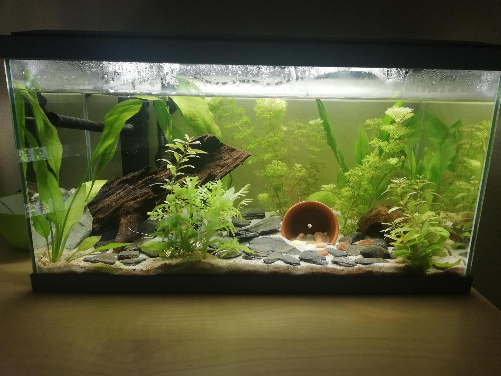 Soit je vend tout et j achète deux petits bac pour mes gosses et je leur apprend, apparemment cette idée les enchante beaucoup. Un veut des crevettes et l autre un petit banc de poissons ou des killies...