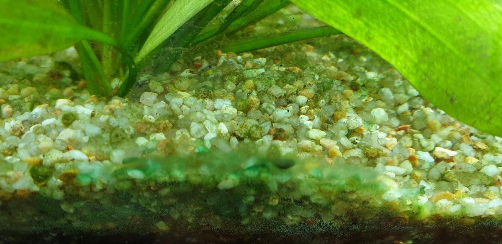 - La cyano au sol a laissé un dépôt verdâtre / marron qui n'embellit pas non plus l'aquarium
