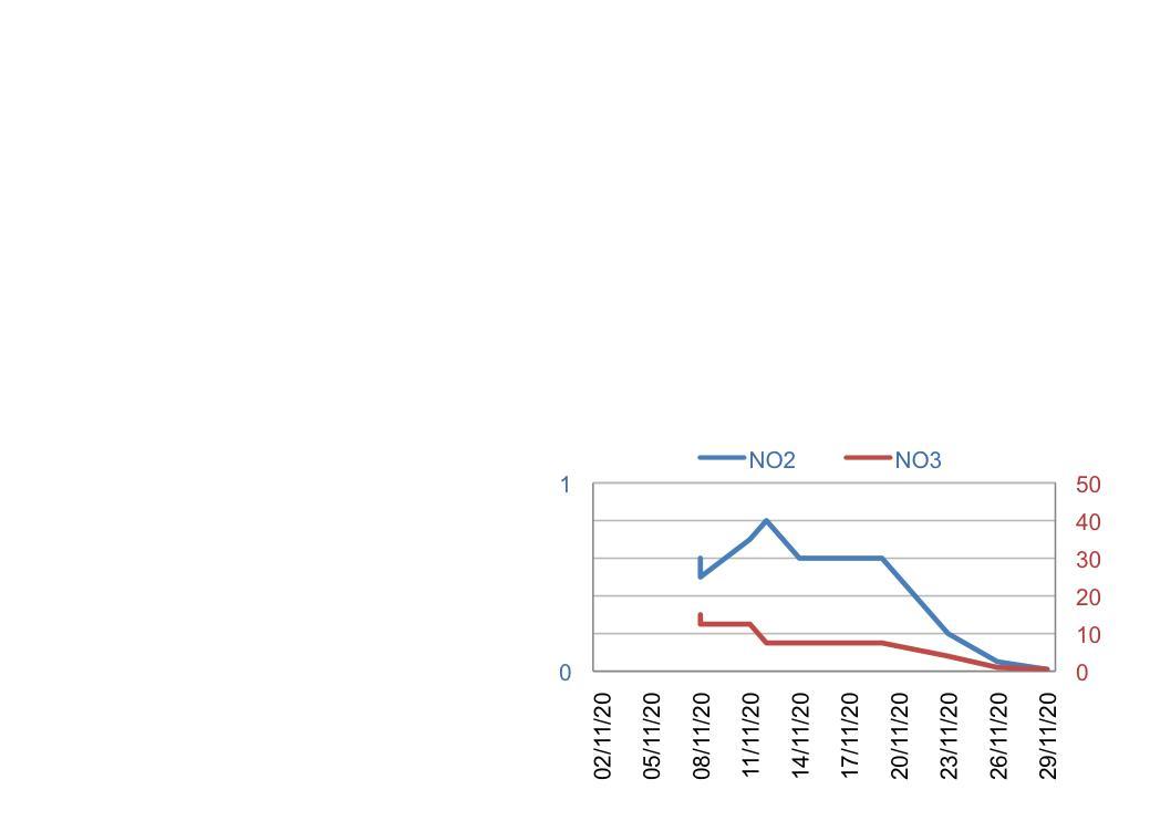 je vous mets un graph de l'évolution de NO2 et NO3 depuis la mise en eau.