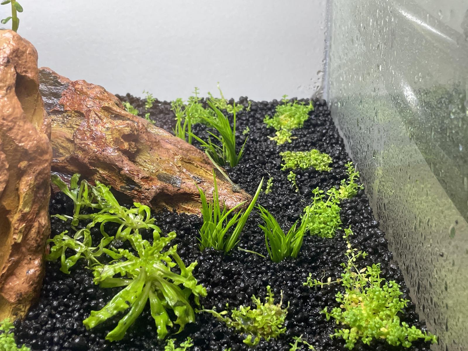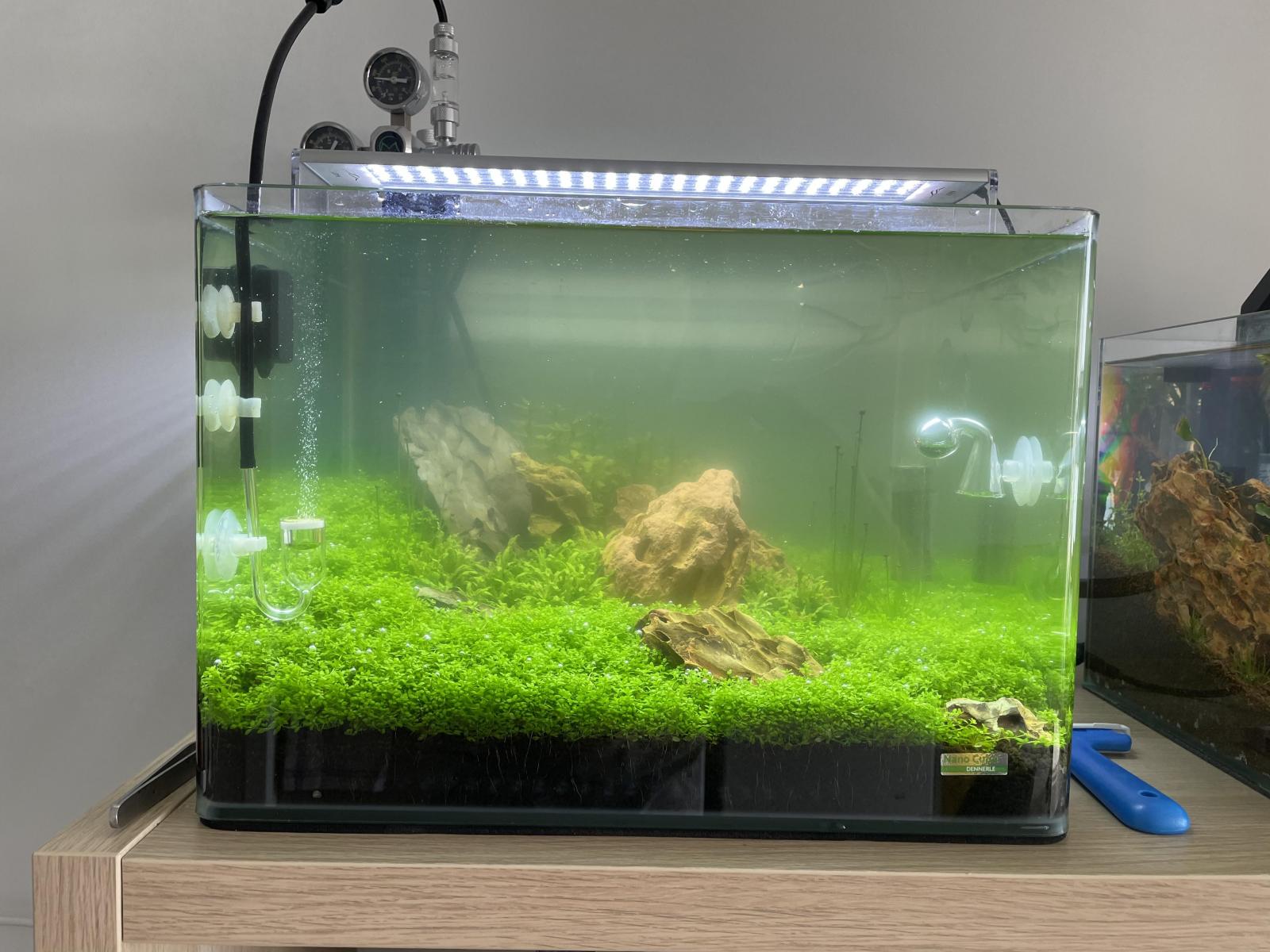 -Végétation: tapis d'Hemianthus callitrichoides sp cuba (HCC), Pogostemon helferi, Rotala sp bonsai, Eriocaulon acicularis polaris (qui arrive demain)