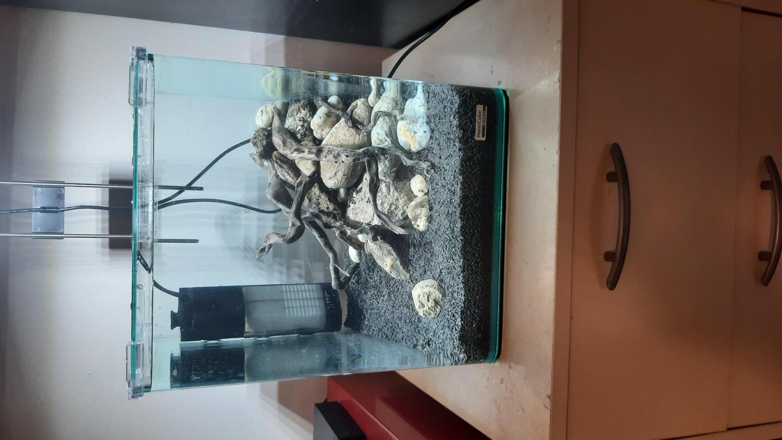 J'avais envie d'avoir un autre aquarium. Je me suis orienté sur petit car je risque de déménager prochainement, ce qui ne me motive pas pour partir sur du gros volume. Je voulais que ce deuxième aquarium me demande peu de maintenance : pas ou très peu d'eau osmosée, peu de plantes à couper régulièrement, pas de nourriture vivante etc...