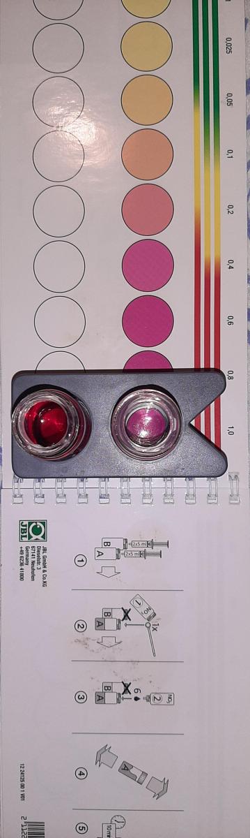 Le test JBL nitrite est violet pétant, je pense être au max du test, cad au delà des 1 mg/L donc.