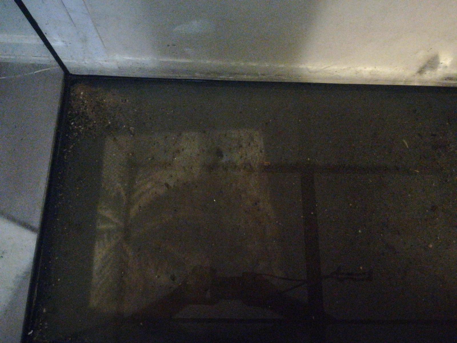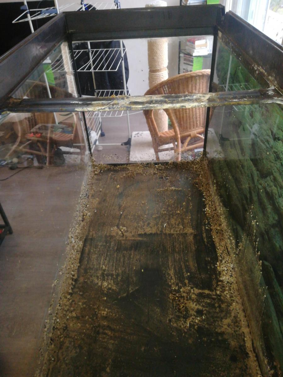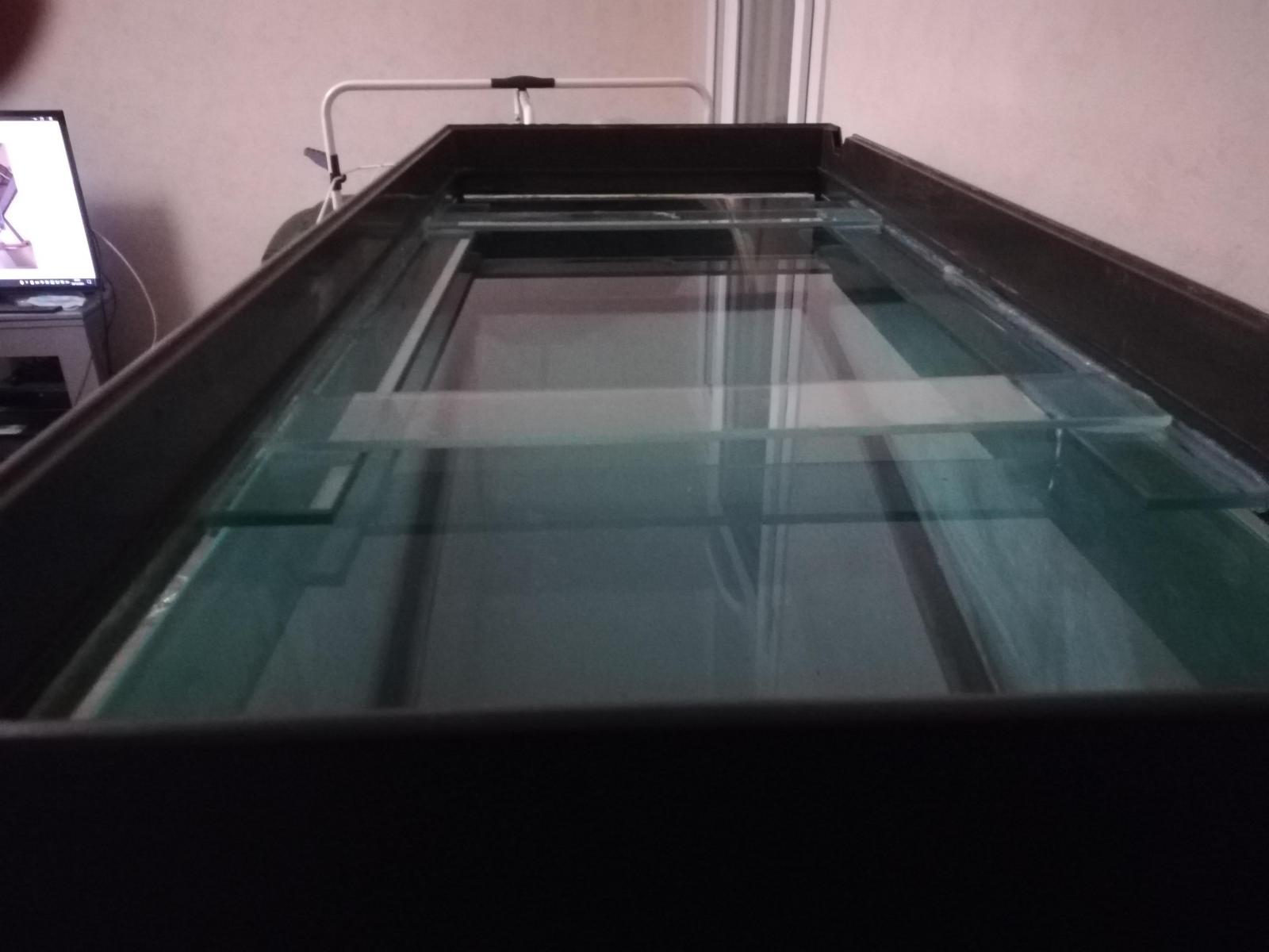 La vitre du fond de l'aquarium repose sur un tapis de mousse (de ce coté là, pas de problème). Mon appartement n'est pas au niveau.