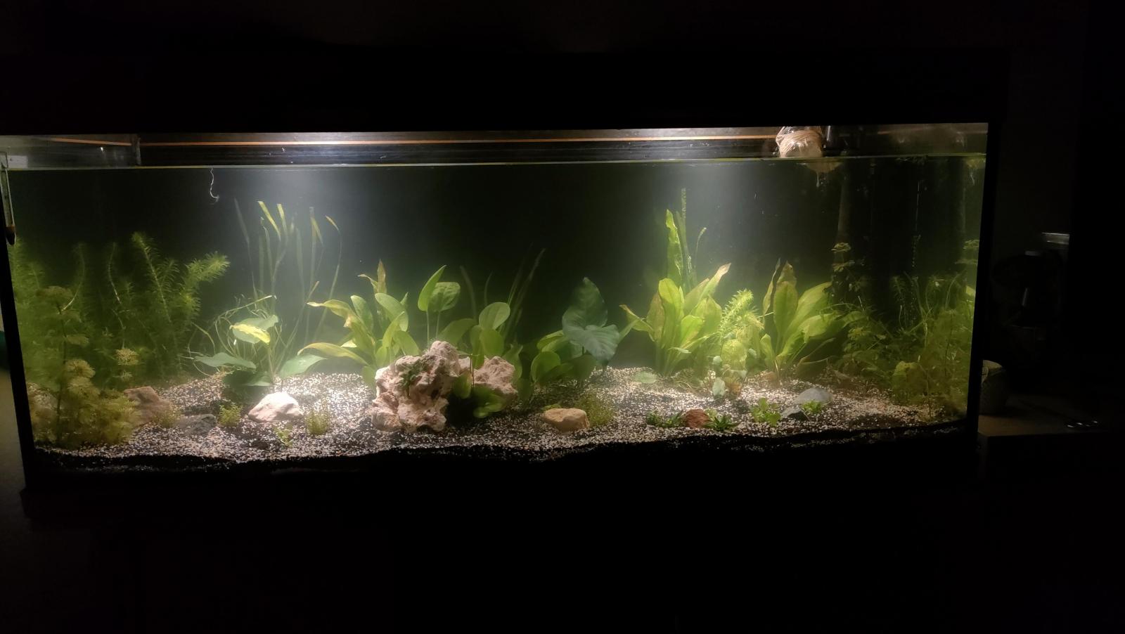 Petit edit pour te donner des nouvelles de mon bac après 1 mois. J'ai fini par tailler les feuilles très abîmées des echinodorus bleheri (il y a 1 semaine) et surtout j'ai ajouté il y a 2,5 semaines :