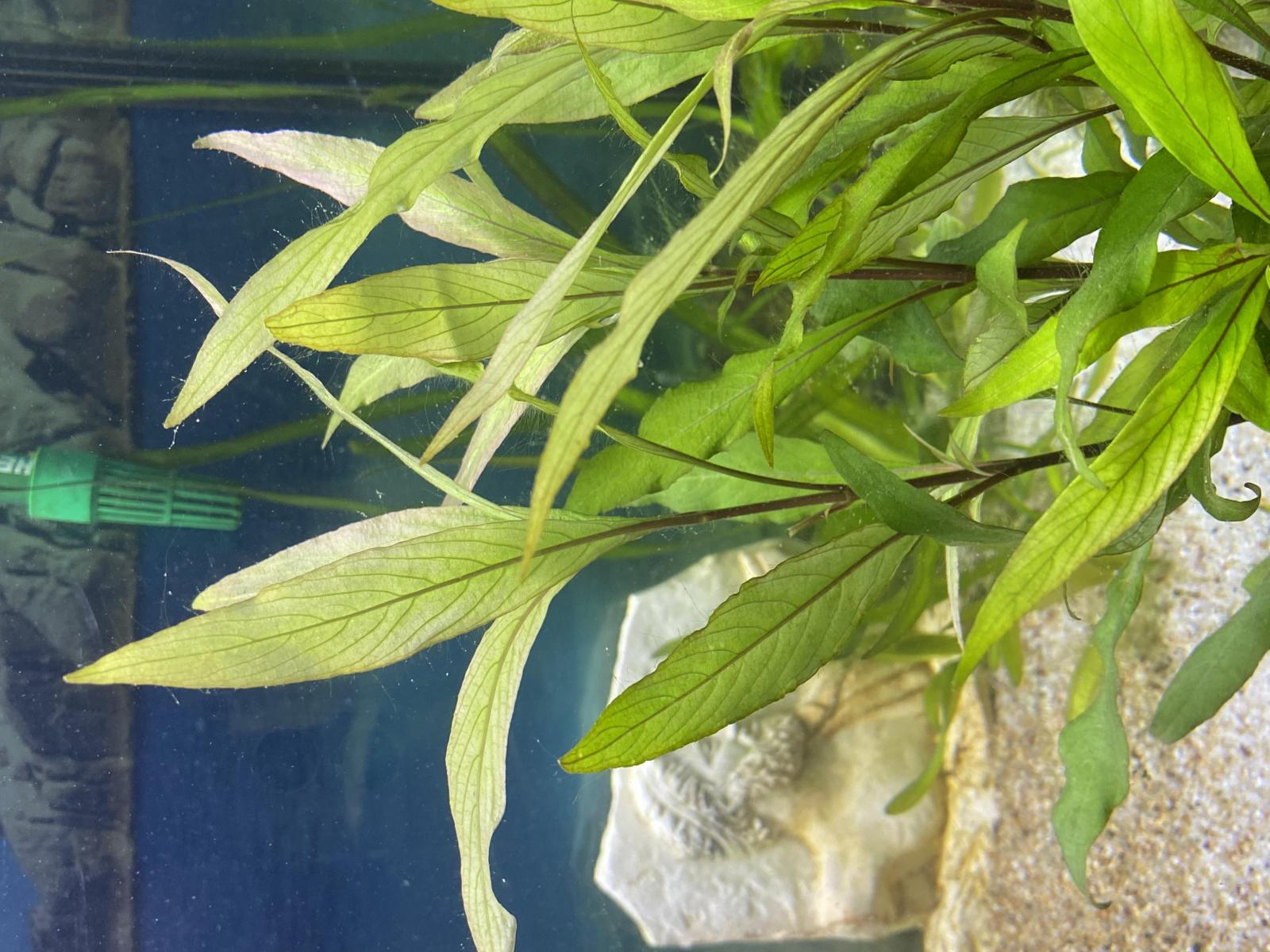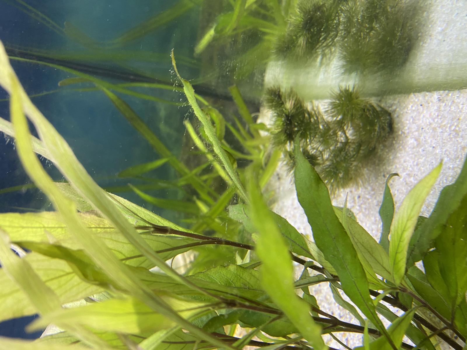 Je l'ai planté j'ai eu droit aux algues vertes filamenteuses au début, mais depuis quelques j'ai une sorte d'algue/residus qui se pose sur mes plantes (tiges et feuilles), ça part en frottant un peu mais ça revient. Voici quelques photos, c'est léger car je viens de frotter ce matin mais ça reste disgracieux et ça ternit un peu les couleurs des plantes 😅 je sais que j'ai un peu remuer le fond en plantant récemment et qu'un peu de substrat sous le sable de Loire s'est échappé et a un peu troublé mon eau (quelques minutes).