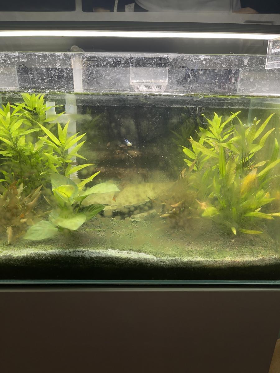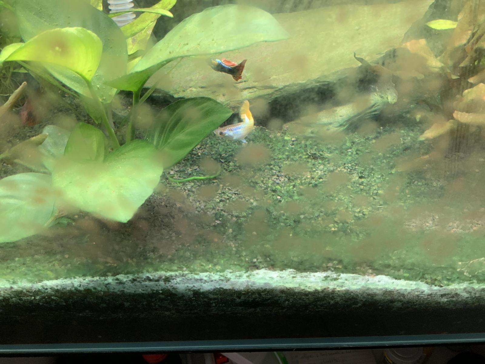Je suis allé dans une animalerie près de chez moi pour prendre des bactéries vivantes (J'avais lu que ça pouvais aider contre les cyano et de repeupler les bactéries après un biocide), et la vendeuse avait eu un soucis et que le bac à guppy n'avait pas été touché car apparement ils les mangeaient. Bref je suis repartit avec 3 guppy mâle (je voulais pas de crèche donc pas de femelle), et j'ai toujours mes cyano, mais j'ai des guppy, mais j'ai toujours mes cyano