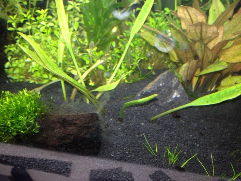 J'ai aussi enlevé le taxyphillum dans lequels pleins de petites boules de mousse vertes s'y coincaient. J'ai aussi viré les escargots, qui m'ont bien énervé aussi à polluer l'aquarium alors qu'il est pas rodé.